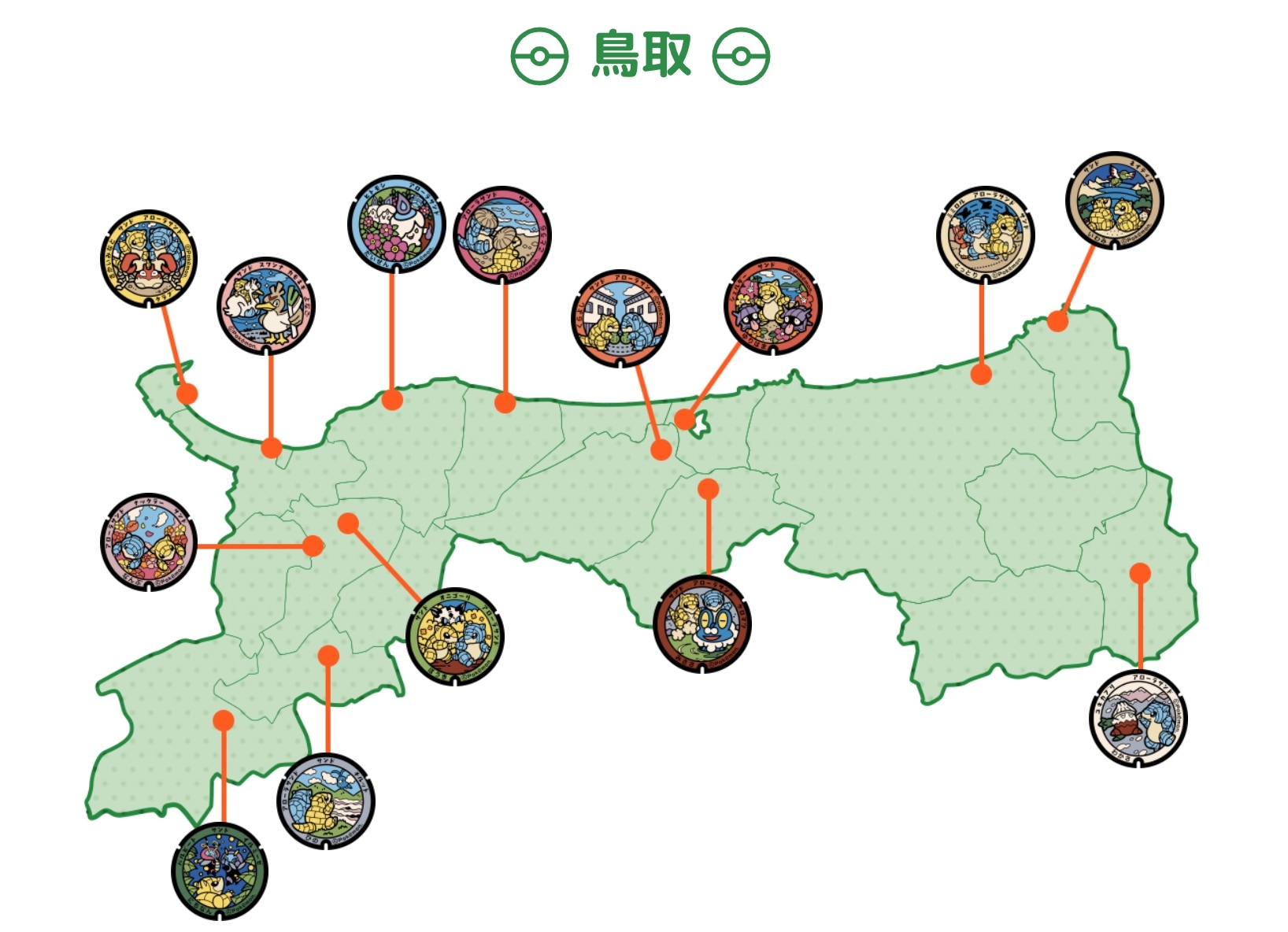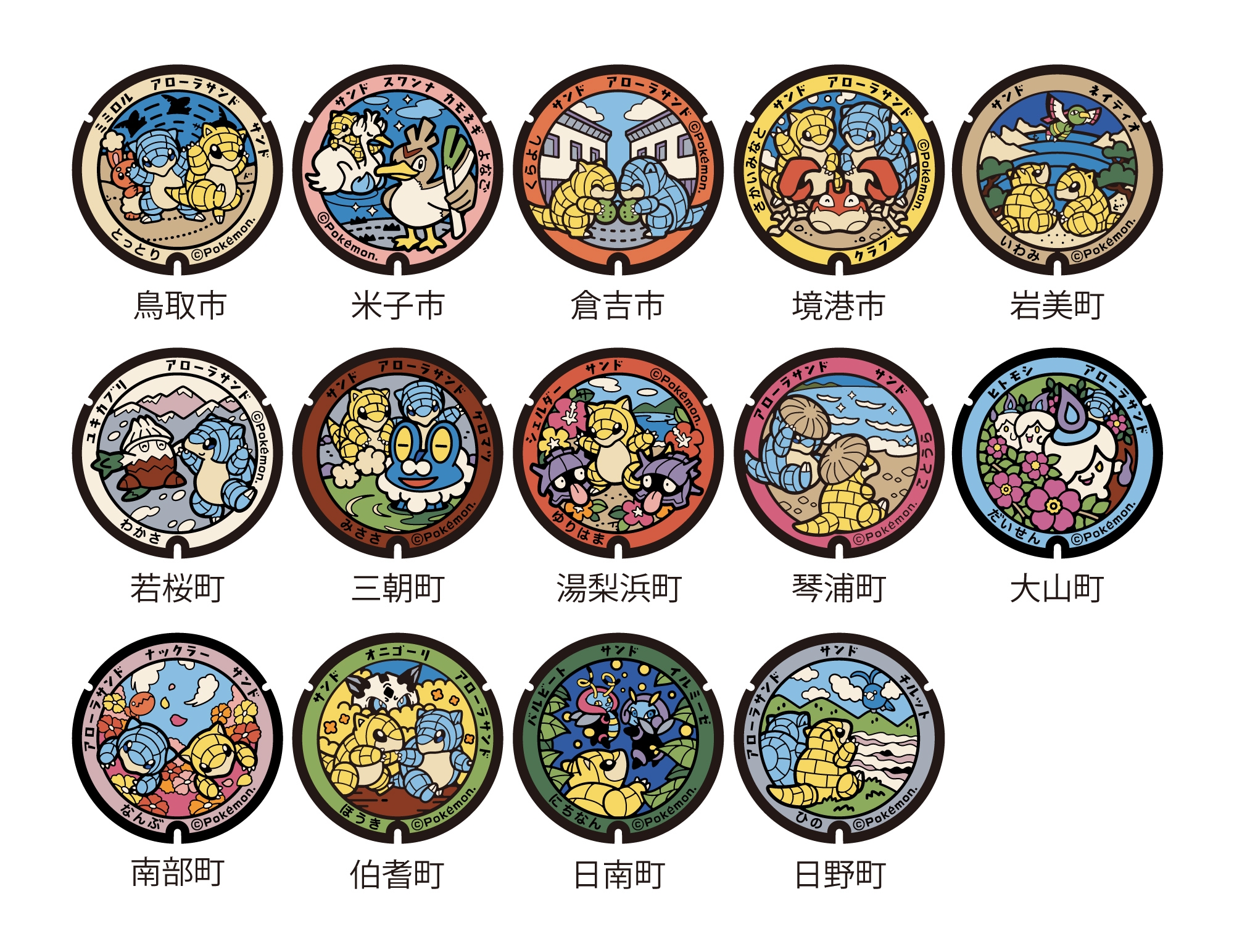 ポケモンを描いたマンホール蓋「ポケふた」が鳥取県内の14市町に設置。ふるさと大使のサンドとアローラサンドをデザイン