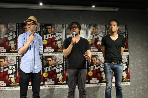 記者発表会には,セガゲームスから「龍が如く」シリーズのチーフプロデューサー 横山昌義氏とプロデューサー 佐藤大輔氏,そして,このゲームイベントの企画・制作を手掛けるSCRAPの代表取締役社長 加藤隆生氏が登壇し,その詳細を解説した。