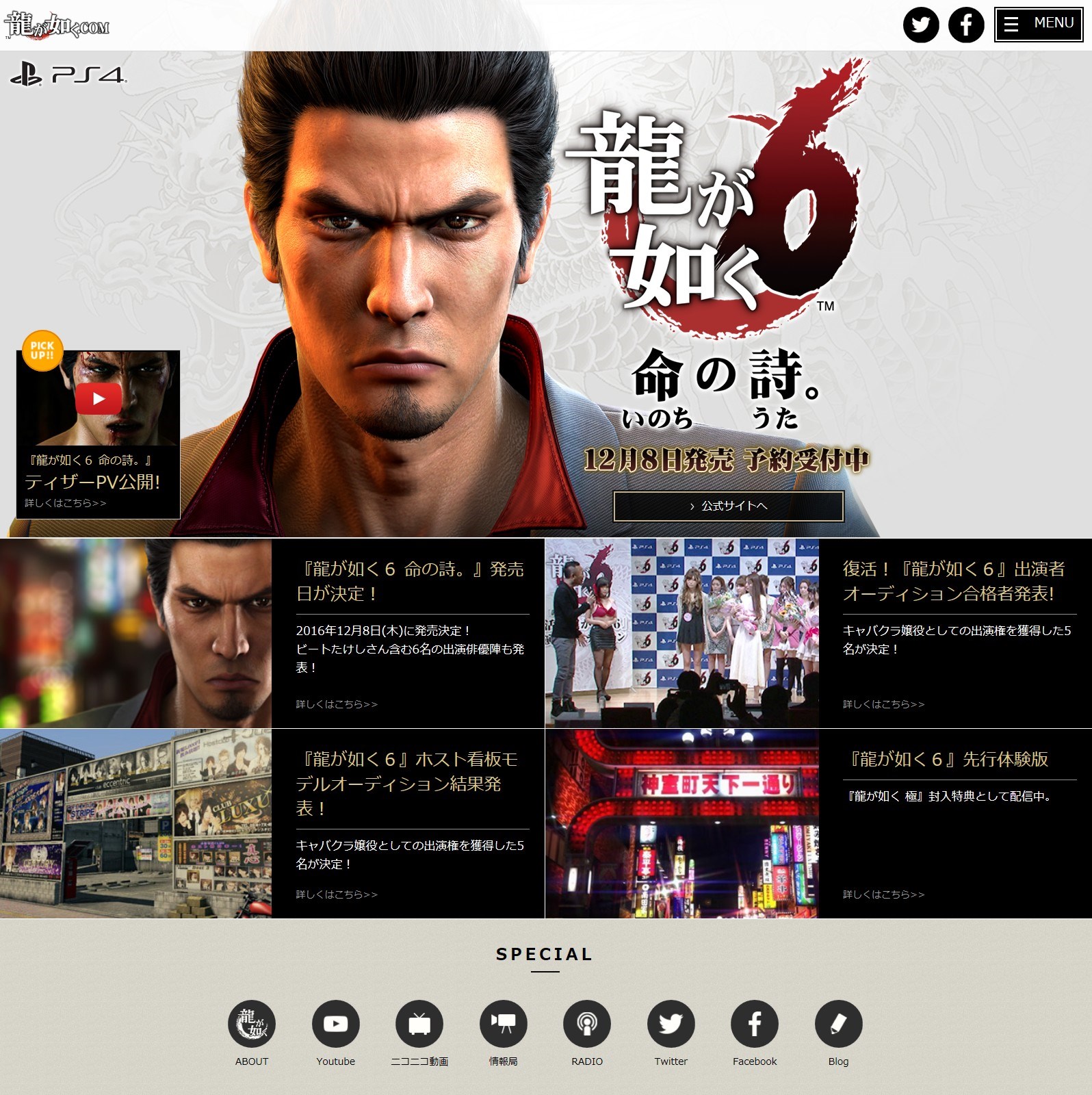 「龍が如く」シリーズのポータルサイト「龍が如く.com」がリニューアルオープン
