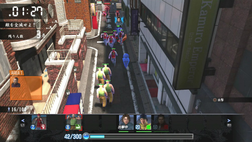 2つ目のポイントは,街中を歩いているときにチンピラやヤクザに絡まれると発生する「喧嘩バトル」。「龍が如く6」から採用されたという「ドラゴンエンジン」のおかげなのか,より直感的に,よりカッコよく戦えるようになった。周囲の地形やオブジェクトもリアルに物理演算が行われ,ますます気持ち良くなっているのだ。