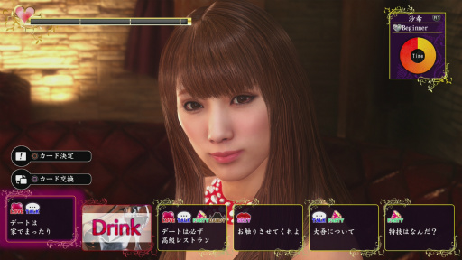 キャバクラはシリーズを通して登場しているプレイスポットなので,すっかりお馴染みだろう。「龍が如く6」では,いくつかの話題から選択していくシステムを廃止し,戦略的なカードゲームに進化している。会話やドリンク,フードといったカードをうまく使って,キャバ嬢との会話を盛り上げていくのだ。