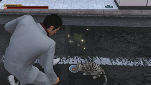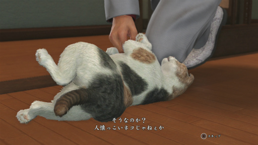 一方,「龍が如く6」で初登場となるネコカフェは,神室町に「cat cafe nyannyan茶房」というお店がある。経営難の店を助けるため,そしてノラネコを救うために桐生が一役買うというわけだ。