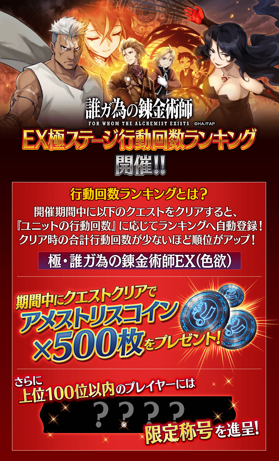 「誰ガ為のアルケミスト」,「鋼の錬金術師FA」とのコラボユニット“スカー”が登場。そのほかコラボイベントが盛りだくさん