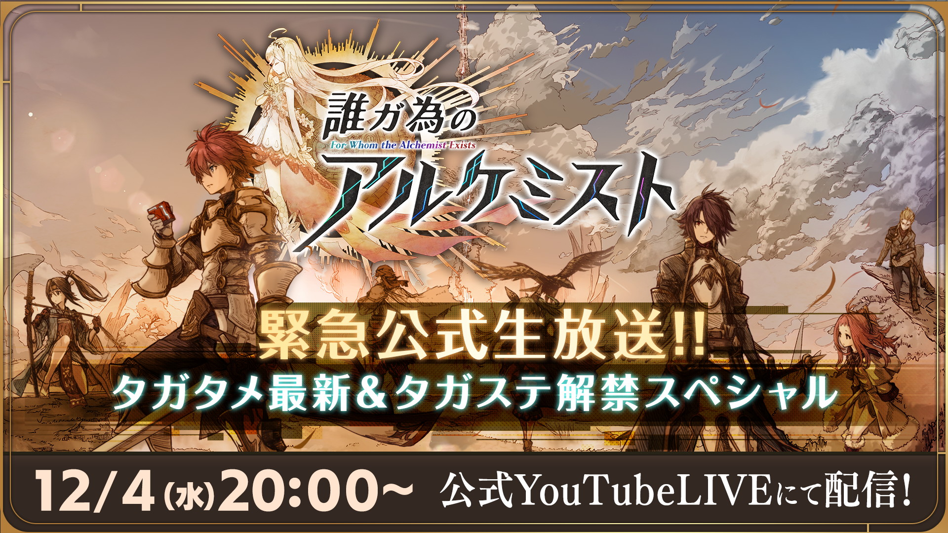 「誰ガ為のアルケミスト」の生番組が12月4日 20:00放送開始