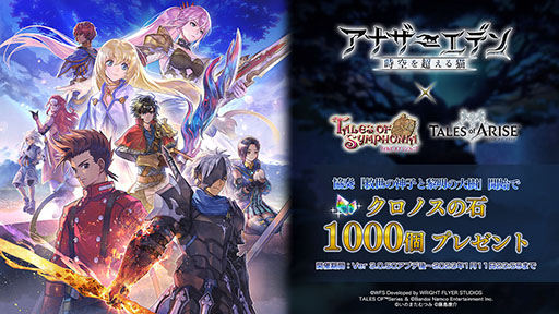 「アナザーエデン」とRPG「テイルズ オブ シンフォニア」「テイルズ オブ アライズ」のコラボが12月20日に開始。両作品の主人公,ヒロインを仲間にできる
