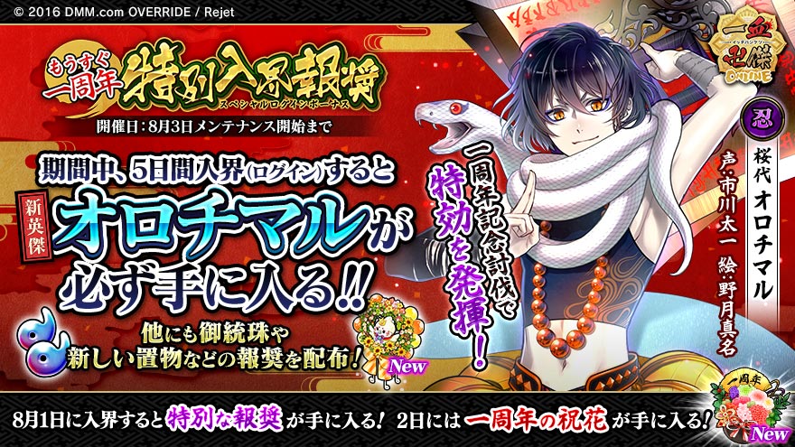 「一血卍傑-ONLINE-」一周年記念アップデートの情報が公開。オロチマルなどを実装