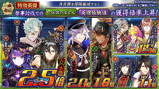 また、新英傑の実装により特効英傑も追加!各英傑を部隊に編成して有利にイベントを進めましょう。