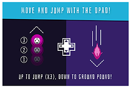 プレイヤーキャラクターの移動は方向キーで行うが,最大3回まで連続ジャンプが可能で,左右方向にはダッシュができる。
