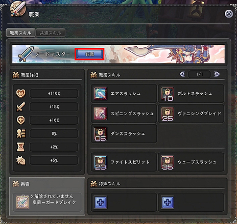 職業選択のアイコンを選択して確定すると転職完了です! |