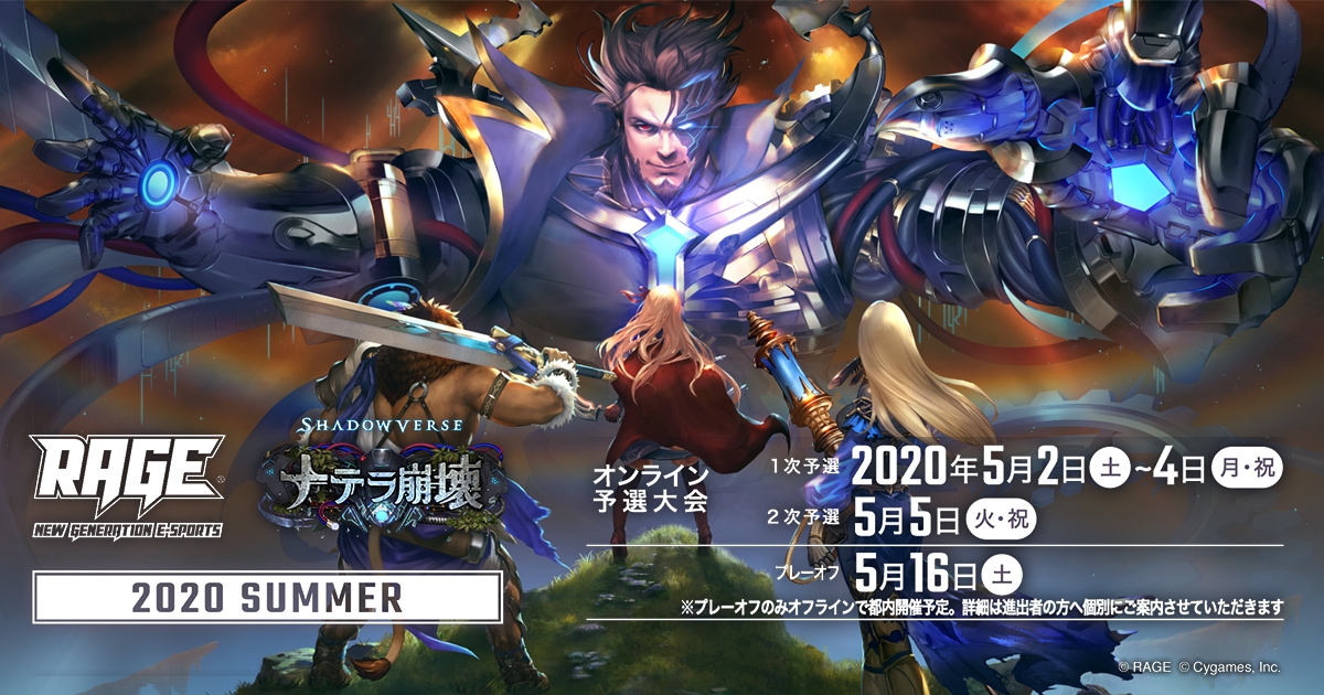 「RAGE Shadowverse 2020 Summer」予選大会の開催方式がオンラインに変更。新型コロナウイルス感染症の影響により