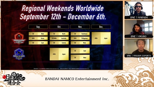 また、オンラインイベント「Tekken Online Challenge」が2020年9月12日〜12月6日、「Soul Calibur Online Challenge」が2020年10月3日〜11月28日の毎週末に行われる。
