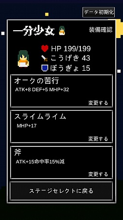 本日の「(ほぼ)日刊スマホゲーム通信」では,1分以内にステージクリアを目指すAndroid用アプリ「一分少女」を紹介する。本作は,モンスターからのドロップやショップでの購入で入手したアイテムで主人公を強化し,全ステージのクリアを目指すRPG。ステージ開始時に主人公のレベルが1となるローグライクRPGのようなシステムが特徴となっている。
