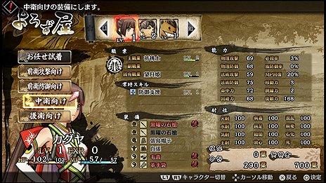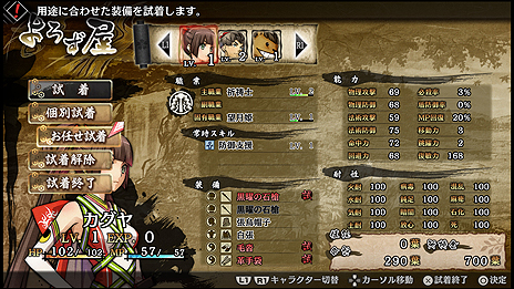 お任せ試着は前衛向け、後衛向けなど役割にあった装備を自動で選択してくれる便利機能 |