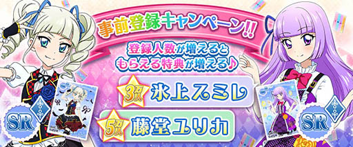 さらに、事前登録人数が3万人を超えると「氷上スミレ」、5万人を超えるとさらに「藤堂ユリカ」のSRフォトを追加でプレゼントします。
