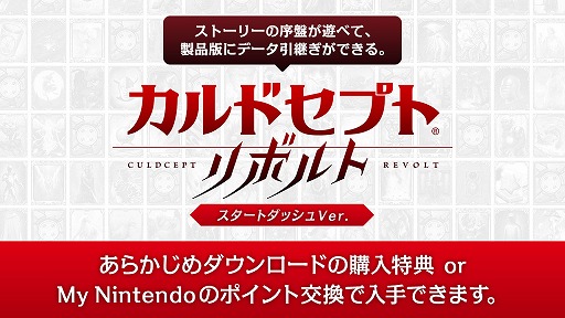ちなみにスタートダッシュVer.は,ニンテンドーeショップにて「あらかじめダウンロード」にてカルドセプト リボルトを購入するか,「マイニンテンドー」のポイント(プラチナポイント 500ポイント)と交換することで,ダウンロードできる。