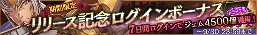 9 月末までの期間、任意のタイミングで合計 7 日間ログインを達成すると、毎日ジェムを手に入れる事が可能です。合計で 4,500 ジェムを獲得可能ですので、装備の獲得やスキルポイントでのスキル強化など、キャラクター強化にお役立てください。