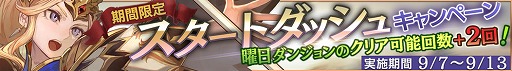 ■スタートダッシュキャンペーンで曜日ダンジョンが熱い!レア素材獲得の大チャンス!