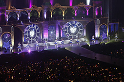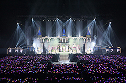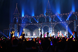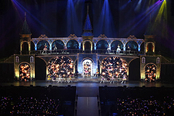 ライトがつくと,お城をモチーフとしたステージに19人のキャストがズラリと並んでいます。その光景はまさに圧巻。各キャストは初日と同様,各アイドルの作中衣装をモチーフにした個別衣装で登場です。
