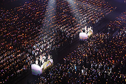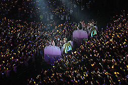 会場のプロデューサー達が「GOIN'!!!」でオレンジ色のコンサートライトを振り,誰からともなく歌い……。やがて大合唱になりました。