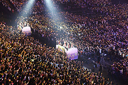 記者席に着くと,今日も各媒体の皆さんが席に座ってノートPCを広げています。私の後ろの席に座っていた記者さんに「すみません,ライブ始まってから立ってもいいですかね……?」と恐る恐る聞いてみると,「あぁ,昨夜もものすごく楽しんでいらっしましたね」と言われてしまい,土下座をしたい気持ちでいっぱいでした。ごめんなさい。