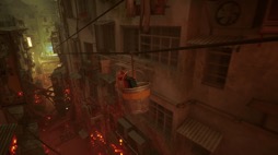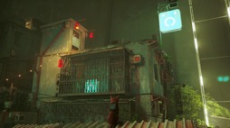 街を探索し,謎を解明していく「アクションゲーム部分」も手応え十分です。先程もお話したように,あくまで猫が可能な動きしかできません。開いてる窓を見つけて,そこから建物に入ったり。エアコンの室外機,板など,いろんな場所に飛び乗ったり。棚や机の上に乗っている物をなんとか落として,先に進む道や隠されていた場所を見つけたり。猫特有のいろんな工夫をして,街を探索していきます。この謎解き感が面白い。