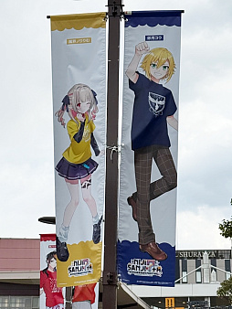 海浜幕張駅から幕張メッセの間にも,にじさんじライバーのフラッグがありました。ただズラッと並んでいるのではなく,親交の深いライバー同士が並べられているところが良いですね。