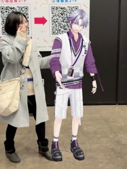 左は2024年に発売された「コンセプトボイス」「シチュエーションボイス」シリーズのビジュアル展示のコーナー。ロアちゃんの帰りをいつまでもずっと待ってる。右はライバーが目の前に実在しているかのようなAR撮影が出来ちゃうコーナーで撮影した写真です。ARといえど,ツーショット撮影って妙に照れちゃいますね。