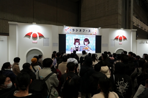 あまりにも二期生すぎる二期生の寄せ書き。今日ここに居ないライバーの想いも一緒に連れてきてくれたような気がして,なんだか嬉しくなっちゃいました。大大大好きな文野 環ちゃんのラジオブースも最高に楽しかったです。文野 環ちゃんと司賀りこちゃんが,共通の話題である「蝉」で盛りあがり,ラジオブースを見ているお客さんたちに蝉の鳴き声のモノマネをさせる……というシーンでは,2月の幕張メッセが真夏へと変化していました。