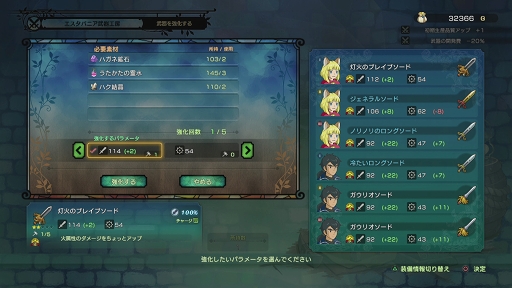 バトルイコライザーが開放されたら,まず優先して強化すべき項目がこの“ドロップの導き”。バトルで得られる経験値,ゴールド,装備品,レア素材の比重を調整できるもので,早いうちから経験値を多く得られる設定にしておけば,キャラクターのレベルがばんばん上がって冒険がスムーズに進められますゾ!