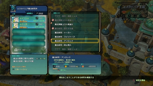 フィールドでまれに見かける青い宝箱。調べてもロックがかかっていて開けられず,何かすごいものが入ってるんだろうなあ,と思いながら泣く泣く諦める,という経験は誰もがしたことでしょう。あの青い宝箱を開けるには,“アンロック”という魔法が必要なんです。“アンロック”は,王国の施設“エスタバニア魔法研究所”の研究で習得することができますよ。