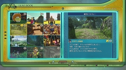 “二ノ国データ”メニューにある“リーフブック”は,二ノ国の人々が利用する,現実世界のスマートデバイスのようなもの。そこに書き込まれるのは,他愛のない出来事やニュースが大半なのですが,エバンたちの冒険に関わりのある,有益な情報も混じってるので見逃し厳禁です。新着記事のアナウンスがあったら[L3]ボタン(左スティック)でリーフブックを起動!