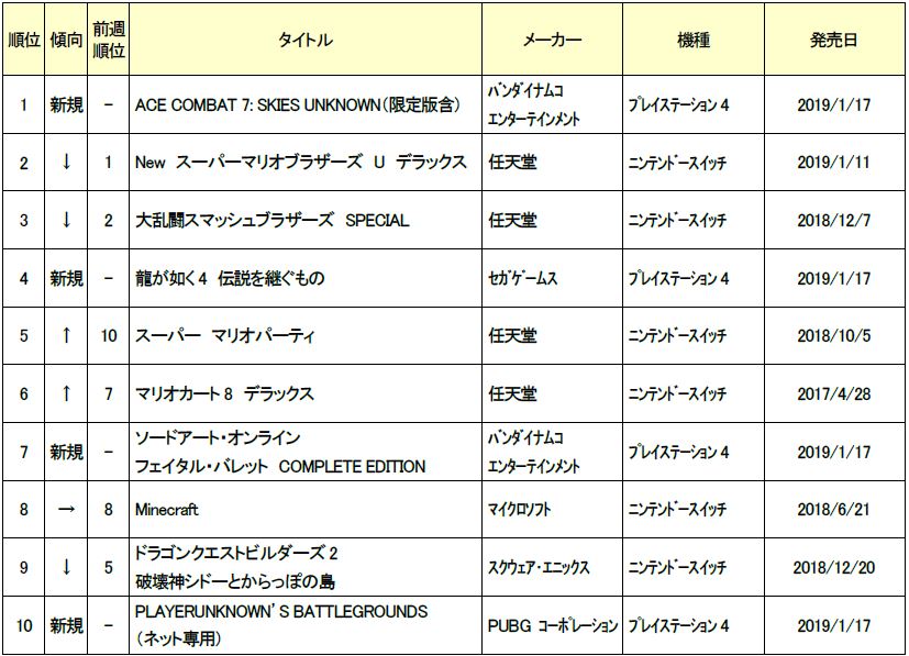 ゲオ,1月3週目の新品ソフト週間売上ランキングを公開。「エースコンバット7」が首位