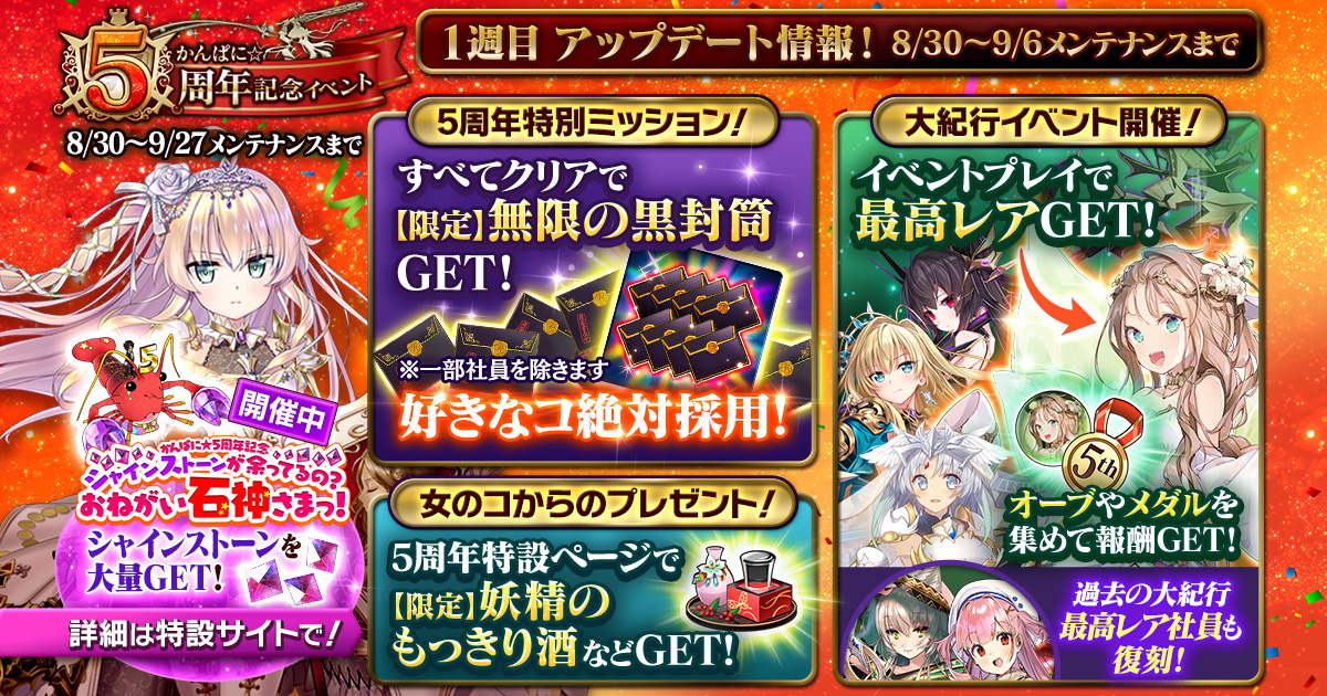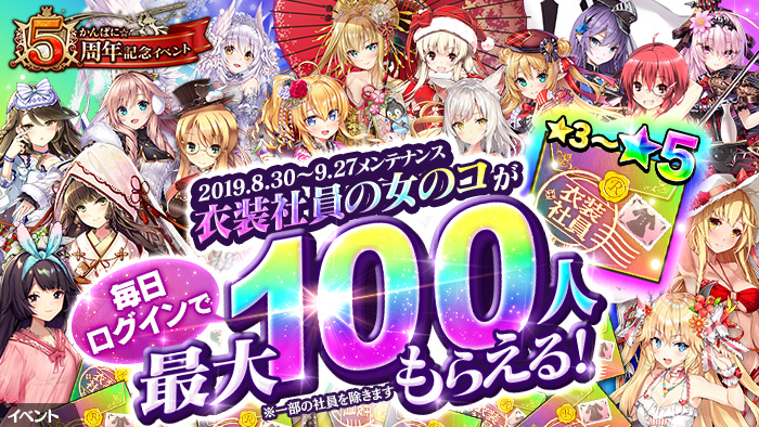「かんぱに☆ガールズ」,最高レア“イスレ”が入手できる5周年イベント開催。限定ログインボーナスも