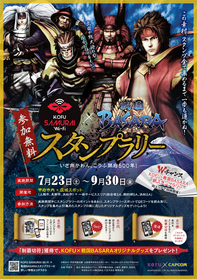 「戦国BASARA 真田幸村伝」のスタンプラリーが7月25日から甲府市で開催