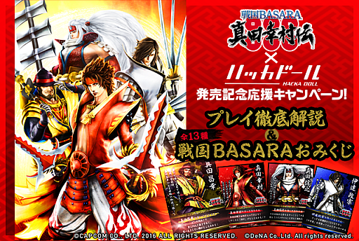 株式会社ディー・エヌ・エー(本社:東京都渋谷区、代表取締役社長兼CEO:守安 功)が提供中のアニメ・マンガ・ゲームなどに特化したニュースサービス「ハッカドール」は本日2016年9月20日(火)より、スタイリッシュ英雄(HERO)アクションゲーム「戦国BASARA」シリーズの最新作『戦国BASARA 真田幸村伝』発売記念応援キャンペーンを開始します。