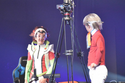 オープニングでは,遊戯王ファンにはお馴染みのカリスマデュエリスト,マスター赤馬(あかうま)さんと,イバルバーさんが登場し,スペシャルエキシビションマッチ「ARデュエル」を行った。