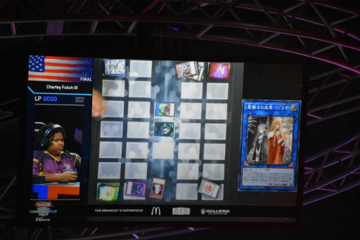 ドラゴンデュエル(OCG 小学生の部)の決勝戦では,アメリカ代表のCharley Futch III選手とドイツ代表のKai Heidinger選手が対決。3デュエル中2本先取した方が勝利となるルールで,使用デッキは両者ともに「剛鬼」モンスターと「トロイメア」モンスターを合わせたものだった。