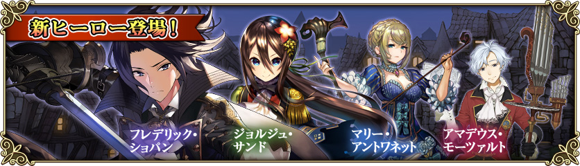 「グリムノーツ」,ショパンやモーツァルトなどの新ヒーローが登場