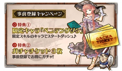 事前登録キャンペーン期間中に事前登録を行うと、今なら登録者全員に限定獣娘『ベニテングダケ』と1500DMMポイント相当となる、『ガチャチケット』3枚がリリース時に配布される予定です。