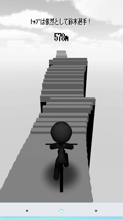 ゲームを開始すると,鈴木がオートで自転車を漕いで前に進む。画面をタップして鈴木を自転車ごとジャンプさせ,コース上の壁や穴を飛び越えながら走行距離を稼ごう。鈴木が壁にぶつかったり,穴に落ちたりした場合はゲームオーバーとなる。