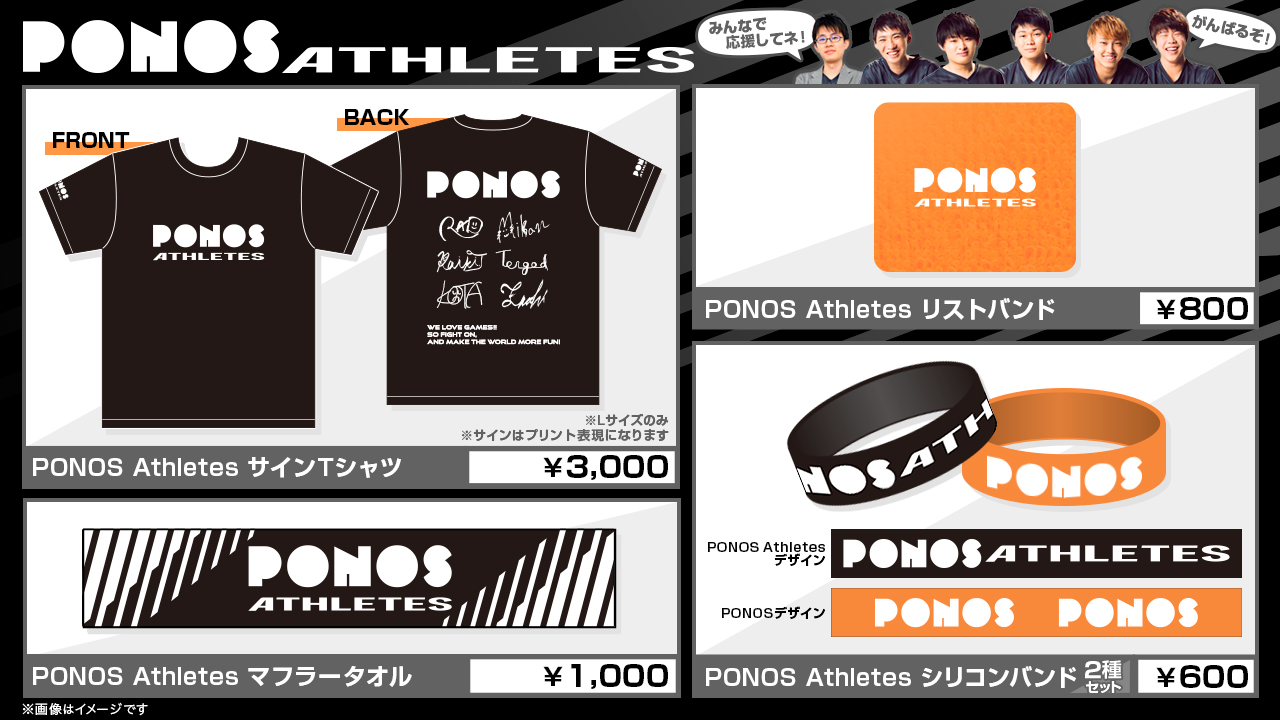 ポノス,自社チーム「PONOS Athletes」の公式グッズを発売。Tシャツやマフラータオル,リストバンドなど