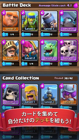 「クラッシュ・オブ・クラン」でもお馴染みのユニットに加え、防衛施設や呪文もカードになって登場!プリンス、ナイト、ベビードラゴン等の「クラッシュ・ロワイヤル」にしか出てこないキャラクターも盛りだくさん。宝箱をアンロックして新しいカードを集め、アップグレードしバトルに備えよう。
