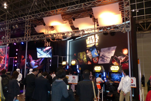 会場ではシリーズの中でもとくに有名な,Xウイングがデス・スターを攻撃する「ヤヴィンの戦い」のステージをプレイできた。ゲームの内容自体は稼働中のドーム筐体と同じだが,実際にシートに座ってゲームをプレイしてみると,ゲーム画面が非常に近くに感じられ,目の前にデス・スターの表面が広がっていく迫力のゲームプレイを味わうことができた。