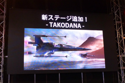 併せて行われたステージイベントでの発表によると,フラットスクリーン・エディションには,「エピソードIV」〜「VI」の名シーンをモチーフとした5つのステージが用意されるとのこと。これらのステージでは,Xウイングやスピーダーバイク,あるいはTIEファイターなどに乗って,コクピット視点でのシューティングが楽しめる。また,現在公開中の映画「スター・ウォーズ/フォースの覚醒」のステージが今年の夏に追加されることも発表され,すでに本作を遊び倒したというファンにも朗報となった。なお,新ステージはドーム型の筐体にも提供される予定だ。
