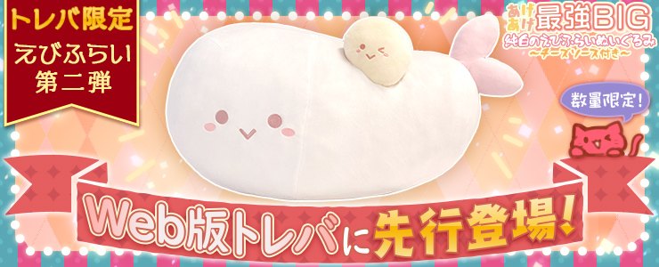 「トレバ」,限定プライズ“あげあげ最強BIG 純白のえびふらいぬいぐるみ〜チーズソース付き〜”が登場