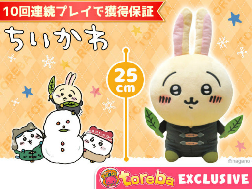 サイバーステップ株式会社は、2,000万ダウンロードを突破したクレーンゲームアプリ『トレバ』にて、2022年1月17日(月)20:00より、イラストレーター『ナガノ』の大人気作品『ちいかわ』のトレバ限定プライズ、10回連続プレイで必ず獲得できる「【トレバ限定】ちいかわ 冬なスタイルぬいぐるみ」(全3種)が登場することをお知らせします。