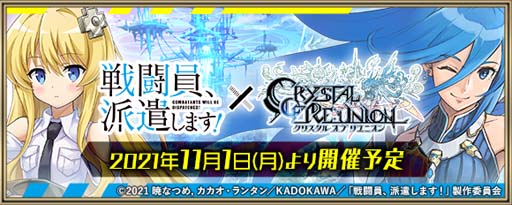 株式会社gumi(本社:東京都新宿区、代表取締役社長:川本寛之)は、日本国内のGoogle Play、App Store、DMM GAMESにて提供中のスマートフォン・PC向けアプリ『クリスタル オブ リユニオン』(以下、『クリユニ』)において、2021年11月1日(月)よりTVアニメ『戦闘員、派遣します!』とのコラボレーションイベントを開催することをお知らせいたします。