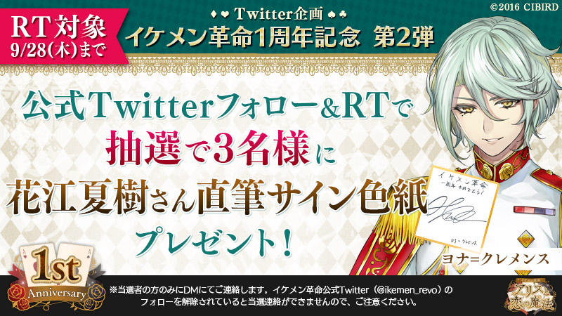 「イケメン革命◆アリスと恋の魔法」,1周年を記念した総選挙が開催。声優直筆サインが当たるTwitter企画も