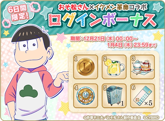 「イケメン革命◆アリスと恋の魔法」,TVアニメ「おそ松さん」コラボがスタート。不思議の国で6つ子たちがくり広げるオリジナルストーリーを楽しもう