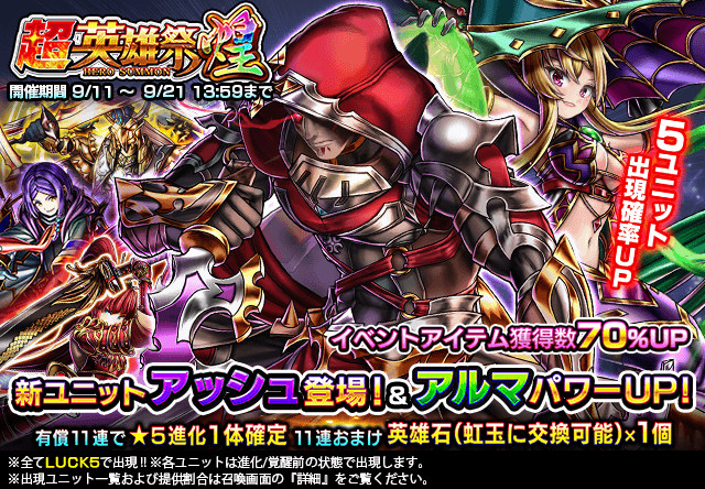「グランドサマナーズ」,期間限定の英雄召喚「超英雄祭・煌」を開催